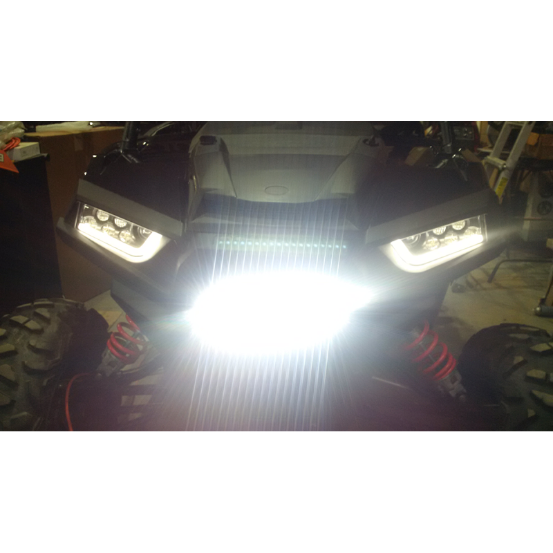 Durable black ABS plastic grille with a built-in 16" L single row light bar. Features a 4500 lumen LED light and a snap-in design that installs in minutes.