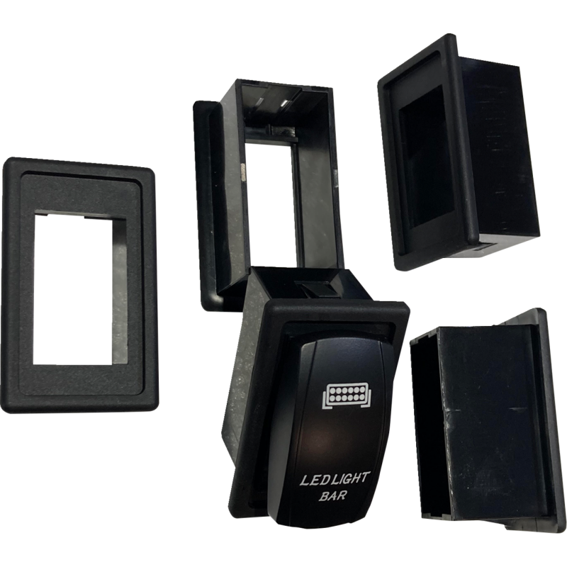 Optimized for snowmobiles with large factory knockout holes in the dash. Slips over a rocket switch to fill a 1.70" x 0.830" open dash or pre-scored dash knockout hold. Comes in a 5-piece pack. NOTE: Shown with LED lightbar switch, not included.