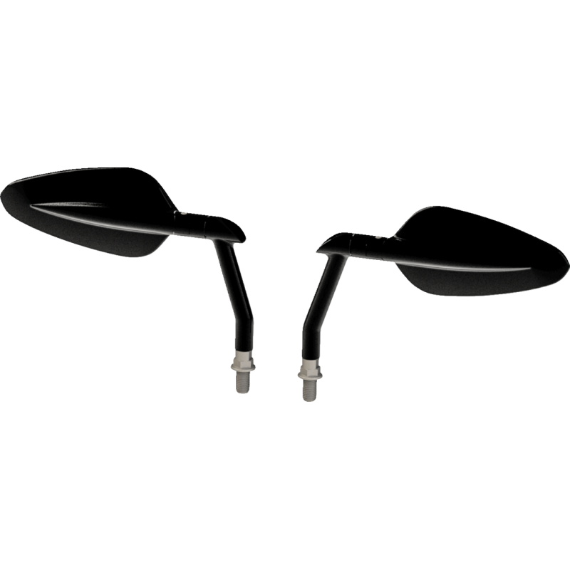 Designed to provide ample visibility side-to-side and behind in spaces where peripheral vision is poor or non-existent. These mirrors are fully adjustable, vibration tested, and made from billet aluminum. They mount to stock hand controls with an M10-1.25 threaded stem. Sold in pairs.