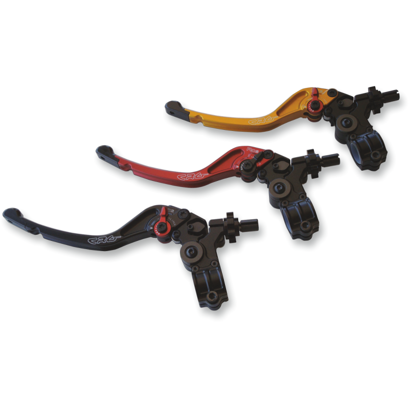 Full lever/perch companion to the latest CRG RC2 lever line. Lever features, colors and graphics match the RC2 brake lever. Features an on-the-fly cable slack adjuster, variable-ratio cable anchor, ball bearing main pivot, PTFE sleeve handlebar mounting, and proprietary design black-plated hardware. Machined from 6061-T6 billet aluminum. Accommodates a wide range of late-model starter safety switches. Made in the U.S.A.
