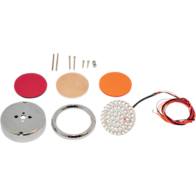 A dual-intensity design with 48 LEDs. Circles can be flush-mounted or mounted on the outside of a fender with longer studs to add a unique detail to bags or fenders. Includes amber lenses. Sold each.