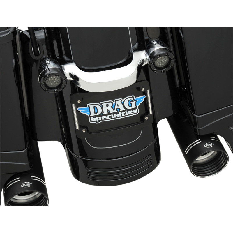 Features 20 super-bright flush-mount dual-intensity red LEDs per side with six bright-white tag light LEDs. Comes in black finish and can be wired as run/brake/turn lights on motorcycles with rear 1157 turn signals. Mounting hardware included. Frame dimensions are 4 1/4" H x 7 1/4" W.