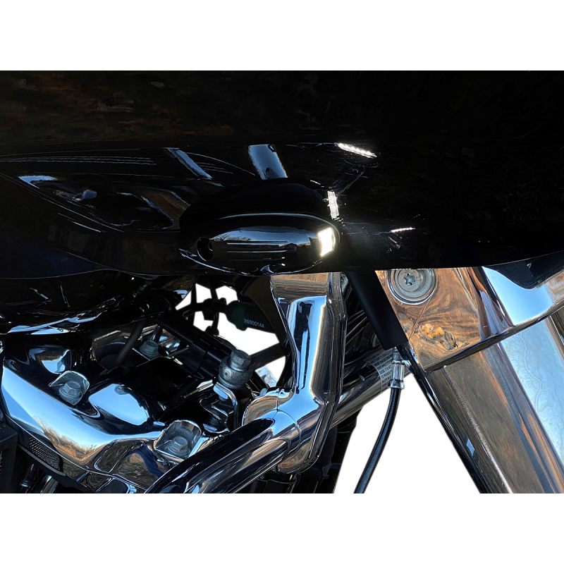 Aluminum housings with four high-power white DRL LEDs and six high-power amber turn signal LEDs. Plug-and-play installation.