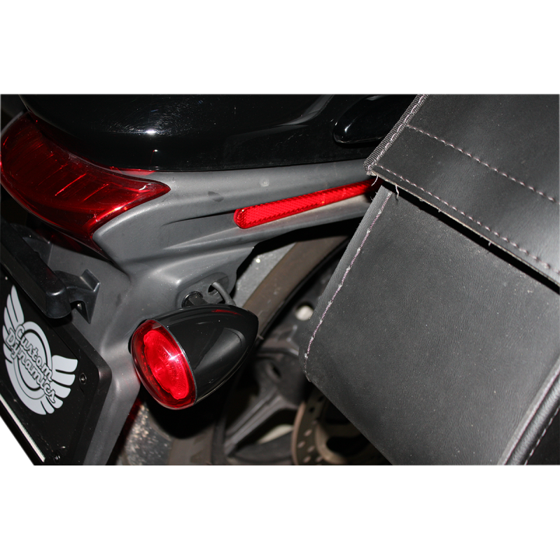 Features 24 red dual-intensity turn signal, automotive-grade LEDs per unit. Housed in an aluminum bullet housing measuring 3.125" L x 2.25" D with a 5/16" - 18 mounting stud. DOT and SAE compliant. Sold in pairs. NOTE: Load equalizer may be required.
