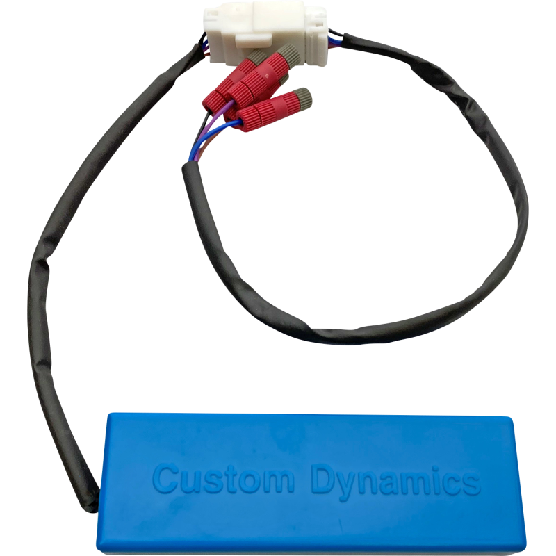 A no load, no heat load equalizer that prevents rapid turn signal flash when factory turn signal bulbs are removed or replaced with LED. One module needed per motorcycle. Features adjustable load setting. Dimensions: 4.2" L x 0.6" W x 1.4" H.