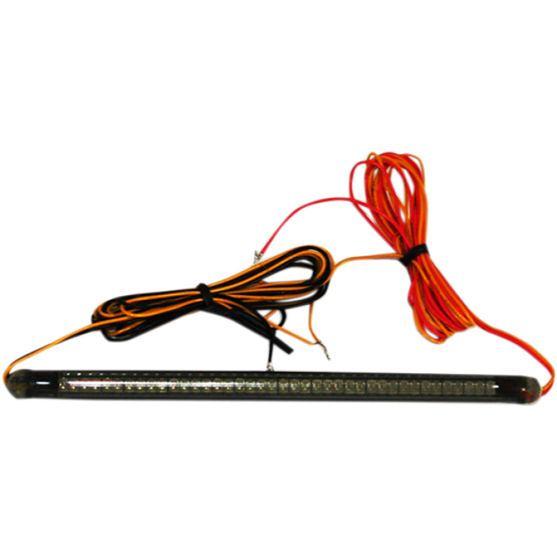 An integrated light bar containing 10 amber left and right turn signal LEDs, plus 20 red run and brake dual-intensity LEDs. Features a smoke-tinted tube and measures 5.7" L.