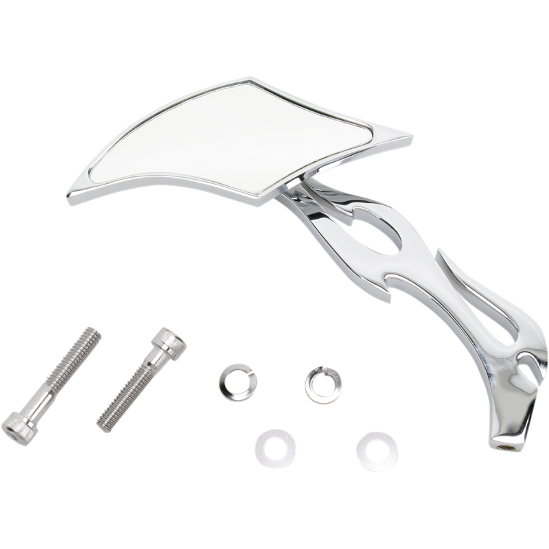 Die-cast construction with a chrome-plated finish. Mirror heads measure 5 1/2" x 2" with a 6" stem. Sold each; includes matching mounting hardware. NOTE: Requires mirror adapter DS-302148/DS-302149/0641-0096. See page 450.
