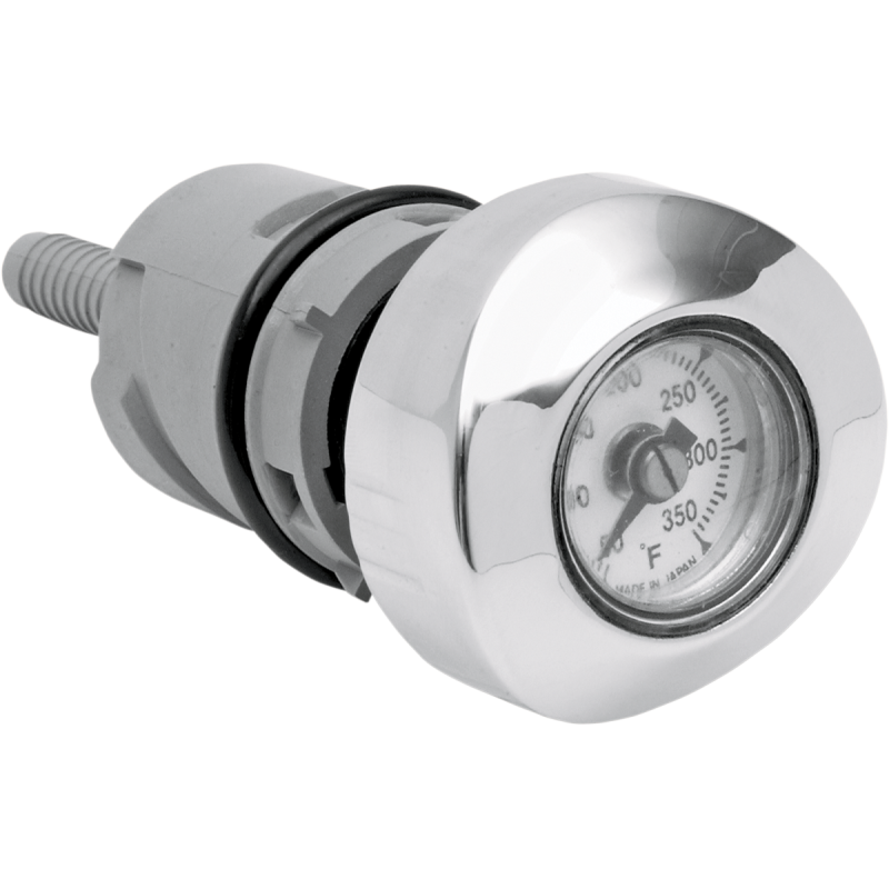 Sensitive to oil temperatures up to 350°F. Features a chrome gauge bezel.
