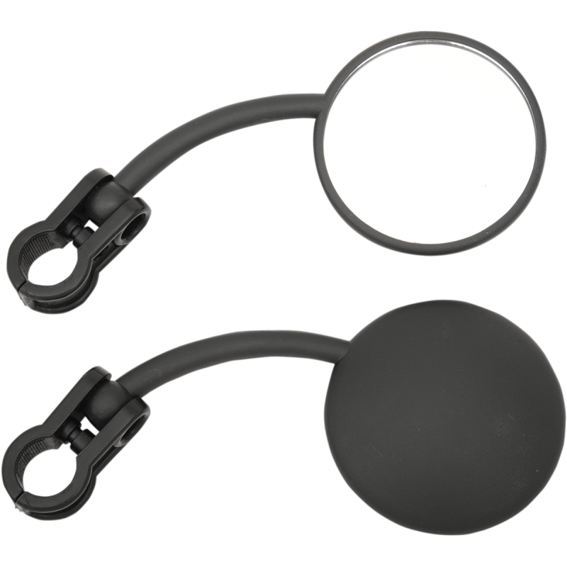 Made from durable black plastic. Clamps around most handlebars. Easily adjustable by loosening one Phillips screw. Sold in pairs.