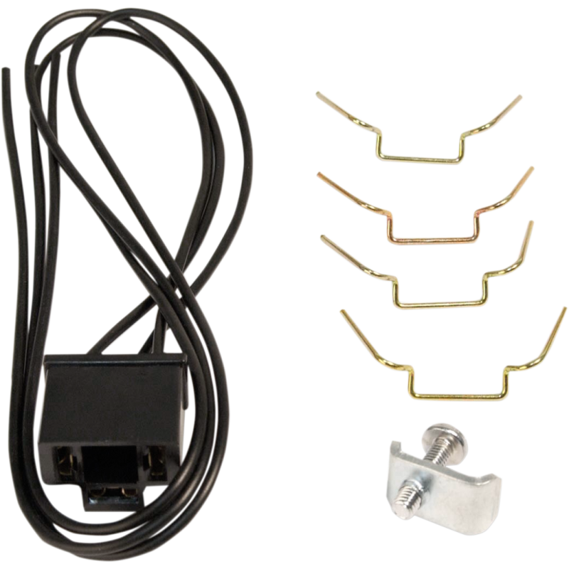 Complete kit with all necessary parts to install Lucas-style headlight shells. Includes (4) W retainer clips, (1) screw, (1) rim retainer clamp, and (1) 3-prong headlight connector with wiring pigtail.
