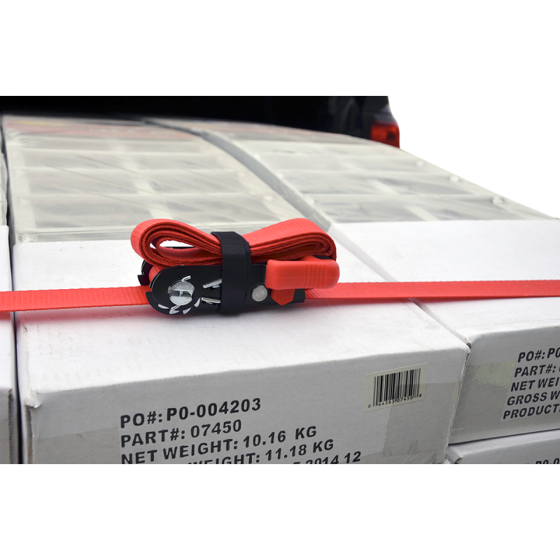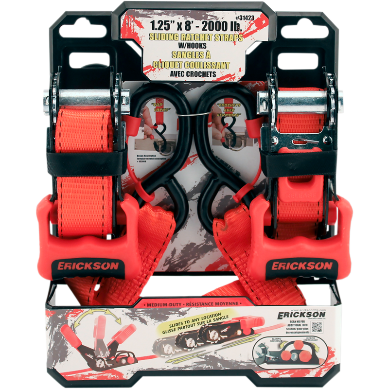 Sliding ratchet can be repositioned anywhere on the strap. Included bundling tie keeps strap webbing neat and out of the way so it doesn't blow in the wind. Cap-lock hooks ensure they don't come loose before tightening. Features 2,000 lbs. maximum load capacity. Sold in a 2 pack.