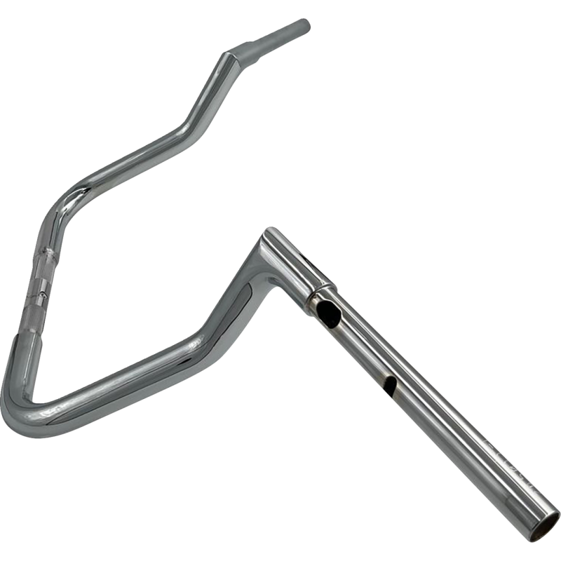 Chrome finish. End Rise: 11”, Width: 36”, Center Width: 15 1/2”, Pullback: 9”.