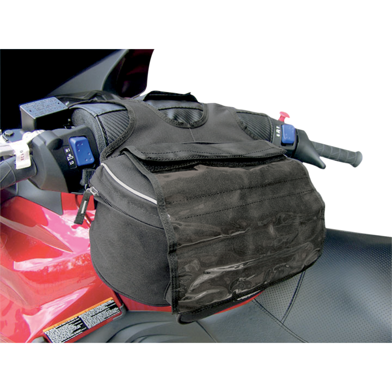 Handlebar bags made from heavy-duty 600D polyester construction with a polyurethane coating to prevent mildew. Features a large main compartment, a front pocket, and extra-long zipper pullers for easy access.