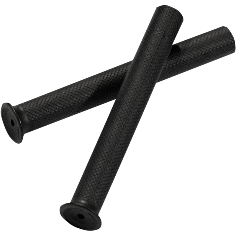 Full-coverage 8" handlebar grips that cover both handlebars and hooks for a comfortable, clean-looking, constant-diameter grip surface. Designed to slide over the handlebar and hook after stock grips are removed. Manufactured from a dual-compound rubber for a soft, nonslip surface with excellent grip. The smaller-diameter gripping surface provides better control with less arm-pump and hand fatigue. Sold in pairs.