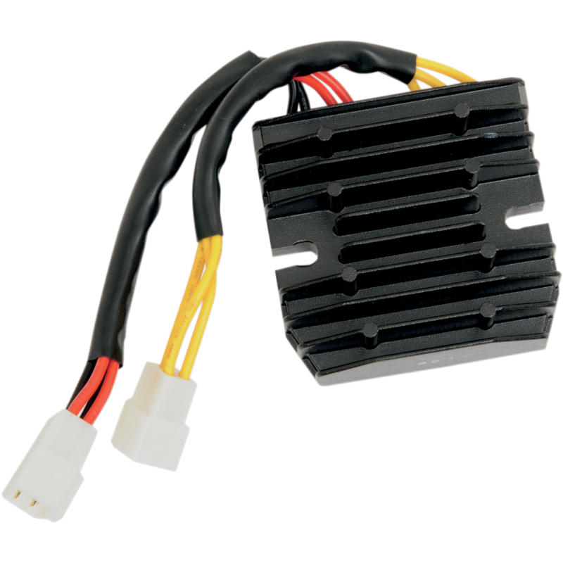 08-12 models have two possible rec./regs.; this rec./reg. has 2 pigtails with a 4-place connector and a 3-place connector. For the rec./reg. that has two connectors mounted flush to the body of the rec./reg. use PART #2112-1094.