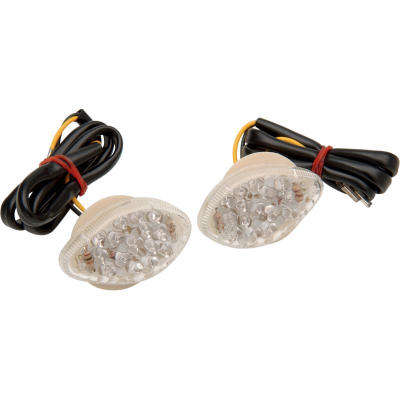 Model-specific waterproof clear lens marker lights with amber LEDs. Marker lights for Honda and Kawasaki come with 15 LEDs; marker lights for Yamaha come with 14 LEDs. Not DOT compliant. Sold in pairs.
