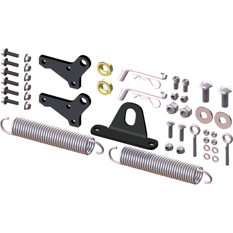 Kit includes hardware kits, lift hook bracket, plow springs, pitch bushings, and hitch pins needed to attach the tube system to the blade.