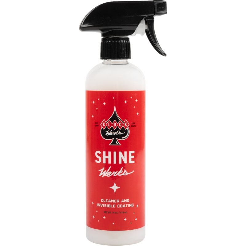 Recommended cleaner designed specifically for Klock Werks Flare™ Windshield. Can also be used on entire bike including plastic, leather, acrylic, plexiglass, Lexan®, chrome, fiberglass and paint. Repels dust, dirt, smudges and bugs. Repels water, prevents fogging and is non-abrasive. 473 ml (16 fl. oz.) bottle, ea. Made in the U.S.A.