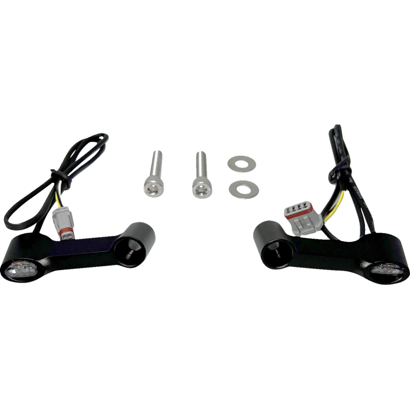 Super small, amazingly bright 2-1 turn signals with smoke lenses. Includes white running and full-contrast amber turn function. Engineered in Germany with SMD-LED technology. CNC machined from billet aluminum, black finish. Sold in pairs, necessary hardware included.