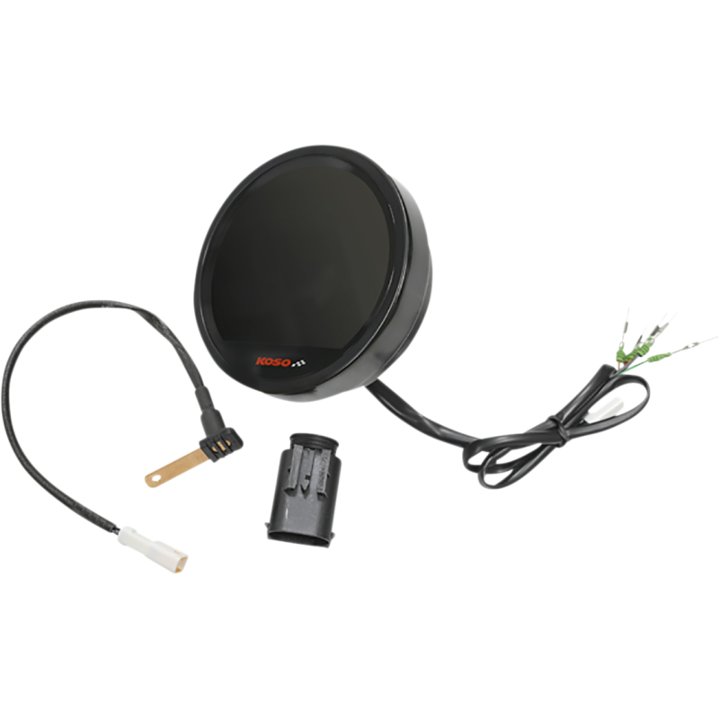 Plug-and-play tachometer/speedometer that includes an odometer and trip meter. Range of 0 to 225 mph (0 to 360 km/h). 12VDC. Effective temperature range 14 to 140 °F (-10 to 60 °C). Features multi-color indicator lights and measures 96 mm in diameter.