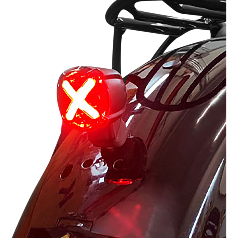 Universal fit taillight for most motorcycles and scooters. Features an extremely bright 12V LED bulb. Includes bracket for mounting. Dimensions: 68 mm L x 51 mm W x 58 mm D. Sold each.