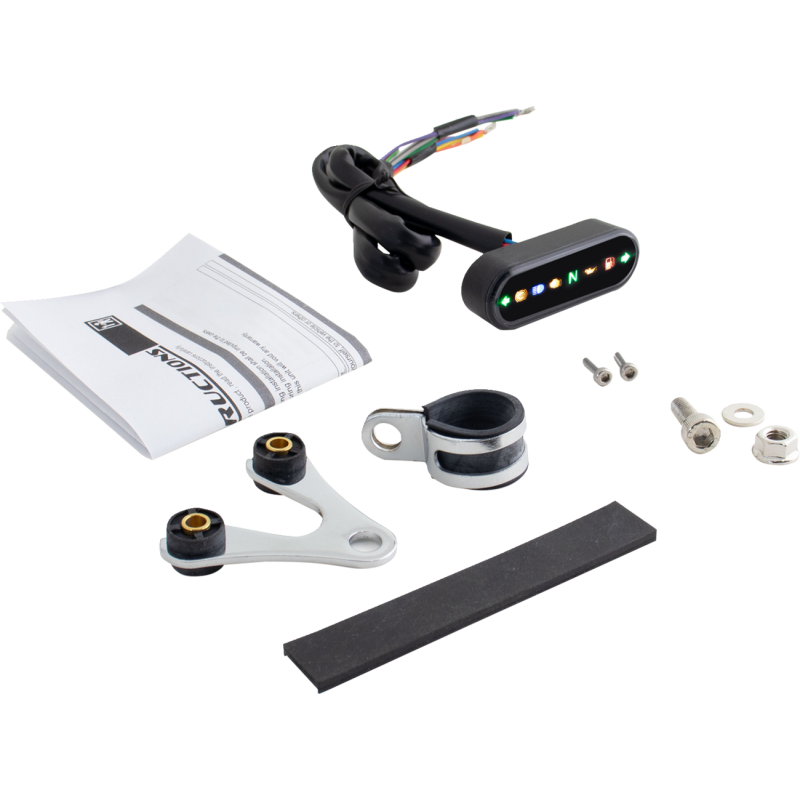 A discreet and easy-to-read indicator light display that provides all necessary information for any motorcycle or scooter. Includes eight indicators: left turn, ABS, high beam, check engine, neutral, oil pressure, low fuel warning, and right turn. Measures 2 1/2" L x 5/8" W x 7/8" H. Sold individually.