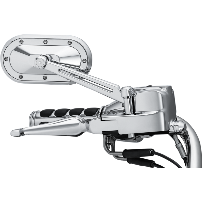 Mirror heads measure approximately 6" L x 3" W. Mirror stems measure 6" L; position the mirror approximately 4" above and 5 1/2" outward from the mirror mount. Include mounting hardware. Sold in pairs.