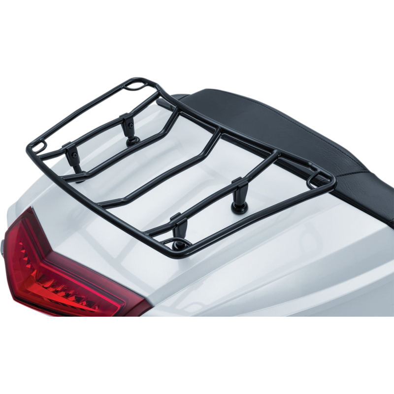 Luggage rack design featuring adjustable mounting stand-offs, which means the rack can conform to any trunk lid. Chrome 1/2" tubular design allows use of any common flag holder. Built-in corner loops keep luggage secure. Rack also comes with a pair of mounting extensions for trunk lids with a steep, downward rear swoop or with a trunk lid spoiler installed. Universal fitment for models equipped with tour trunks; measures 21" W x 12" L.
