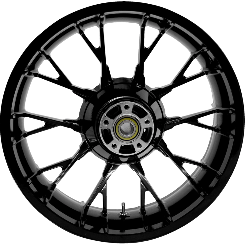 Rear wheel, Marlin Solid Black finish. 24 FLHX/FLTR will require Coastal Moto 320 mm rotors.