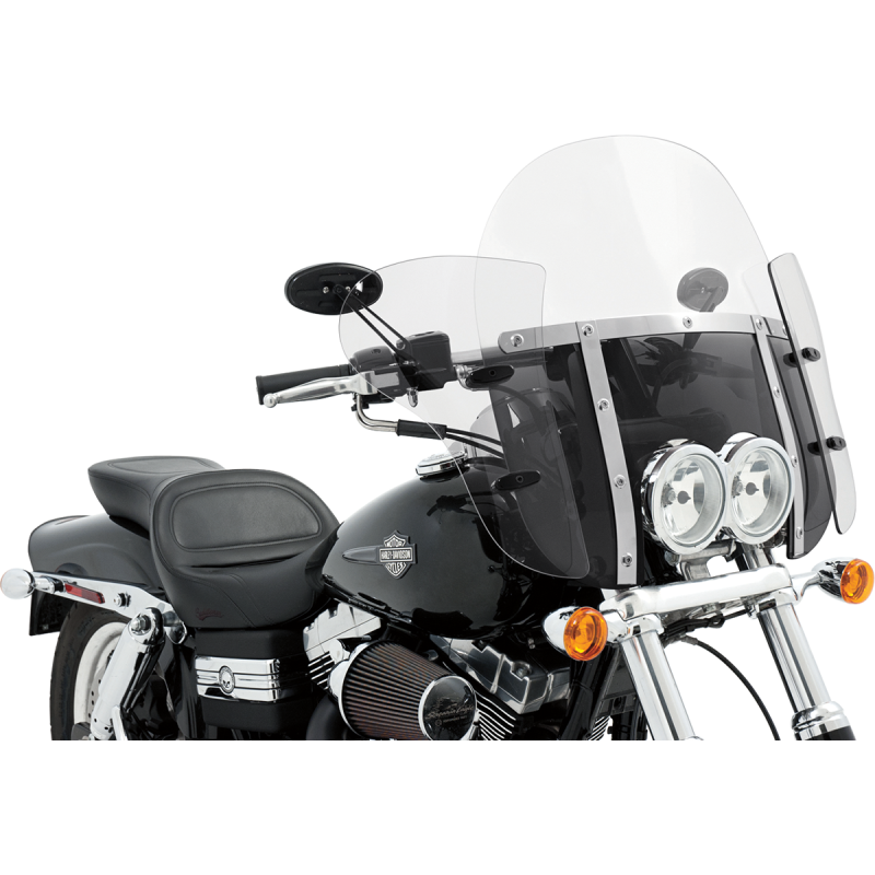 Expand the comfort pocket by channeling air outward while cleaning the flow. Adjustable to suit rider preference. Can be installed or removed with the windshield intact, as Santoprene pads grip the windshield without marring the surface. Features a 'Ghost' shade, a neutral tint with 85% light transmission. Fits all Memphis Fats windshields or similar windshields measuring 3 mm or 4.5 mm thick. Made in the U.S.A.