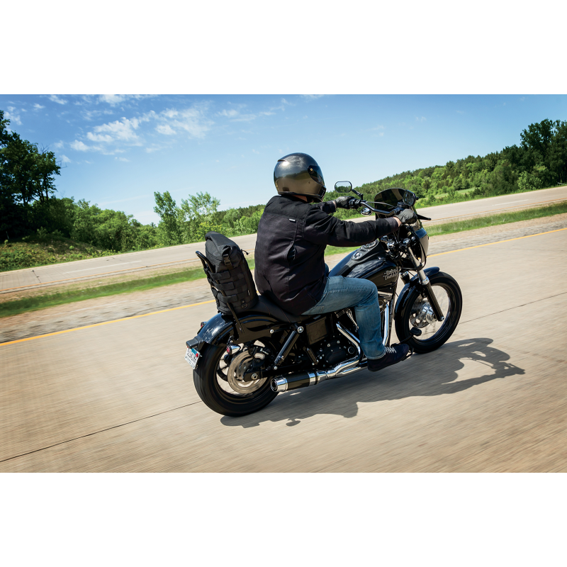 • Quick-mount sissy bar strap for safe and secure mounting in seconds