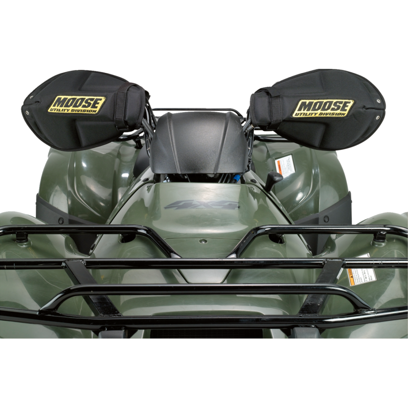 Heavy-duty 500D nylon with 1/2" closed-cell foam keeps hands warm and dry. Cinch-strap type fasteners seal around the handlebars. Sold in pairs.