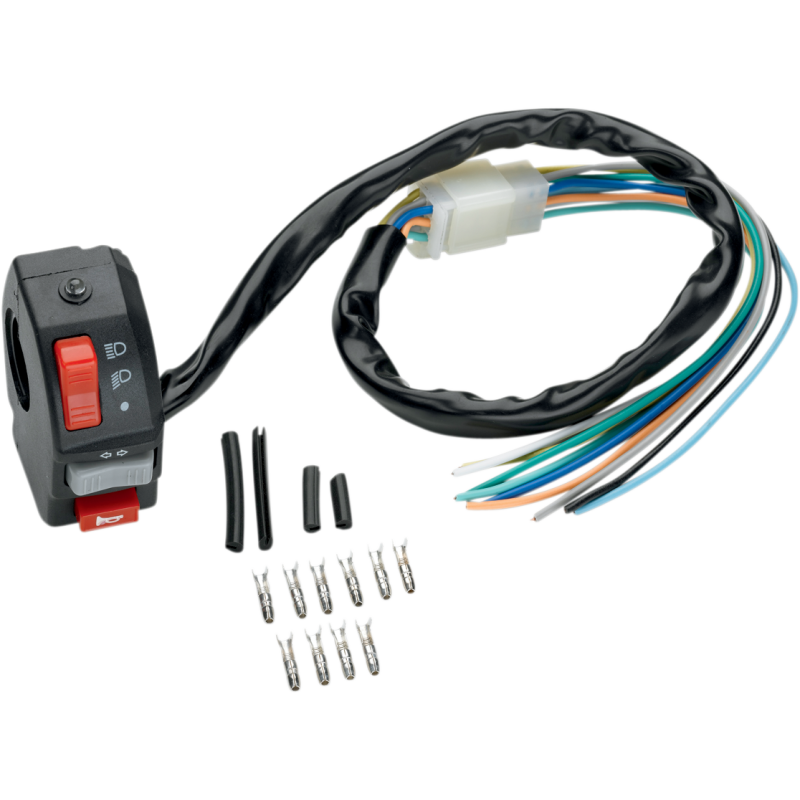 • Functions: headlight on/off, headlight high/low, directional switch, horn or kill switch, high beam LED indicator