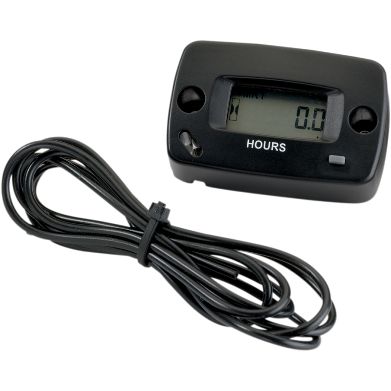 A resettable hour meter for use with motorcycles, ATV, UTV, snowmobiles, and PWC. It helps track service intervals for oil changes, valve adjustments, spark plugs, etc. Installation is easy with peel and stick or enclosed hardware. It connects to the spark plug wire and requires no battery. Works on any gas engine. Made in the U.S.A.