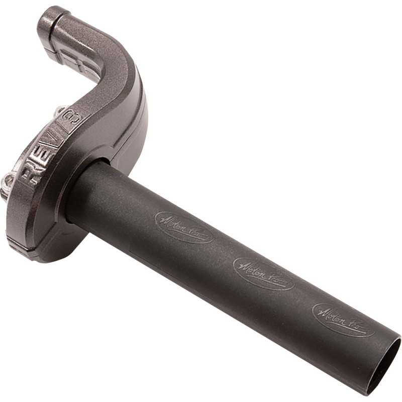 The 3rd generation Motion Pro Revolver variable rate throttle system. Innovative reel changing system lets you tailor the throttle rate to your preference and riding conditions. 5 different reels provide perfect throttle response for any condition. Slim REV3 throttle housing allows more room for lever clearance and adjustment. Improved throttle stop provides greater strength and durability. Snap together elbows make it even easier to install and change reels. Billet aluminum inline cable adjusters ease installation and adjustment. Lower section of cables use 5 mm housing with PTFE liner for reduced friction, increased routing flexibility and lighter weight. Upper section of cables use 6 mm housing to provide solid support of adjusters. Simple to install and maintain. Kit includes: REV3 throttle assembly with throttle tube, REV3 black vinyl cables specifically designed for your bike, Motion Pro RoadControl grips PART #0630-0608, four interchangeable round reels: 35 mm, 40 mm, 45 mm, 50 mm; sportbike kits include road race profile cam reel (orange) and offroad kit includes offroad profile cam reel (gray).