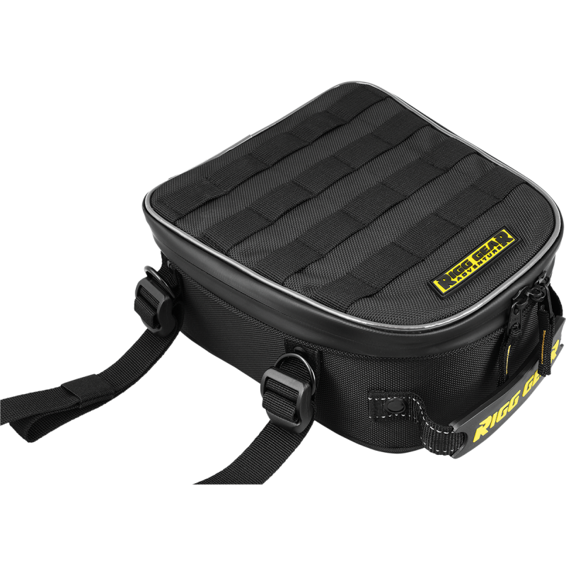 Lite model tank bag with a V-shaped base for off-road, dual-sport and adventure motorcycles. Made from top quality UltraMax™ polyester. Features quick-release mounting, side pockets, reverse coil zippers, adjustable shoulder strap, and a touchscreen device-friendly clear map pocket. Dimensions: 10.25" L x 6.5" W x 4" H. Holds 4.4 L.
