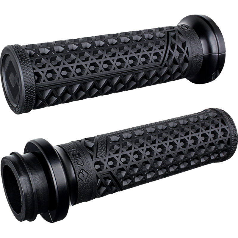 The Vans V-Twin Lock-On Grip System features the classic Vans waffle sole pattern and is built to deliver an amazing riding experience. 100% slip-free performance guaranteed. In-molded throttle tube with integrated application-specific throttle actuation. Billet aluminum Lock-On style clutch side clamp eliminates the need for grip glue or safety setscrews. 130 mm overall grip length with flange. Sold in pairs. Made in the U.S.A.
