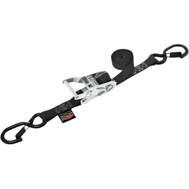 1" W x 12' L industrial-grade PowerTye ratchet tie-down with heavy-duty vinyl-coated secure latch hooks. Features 4,500 lb. test nylon webbing with a 700 lb. working load and double security stitching. Sold each and made in the U.S.A.
