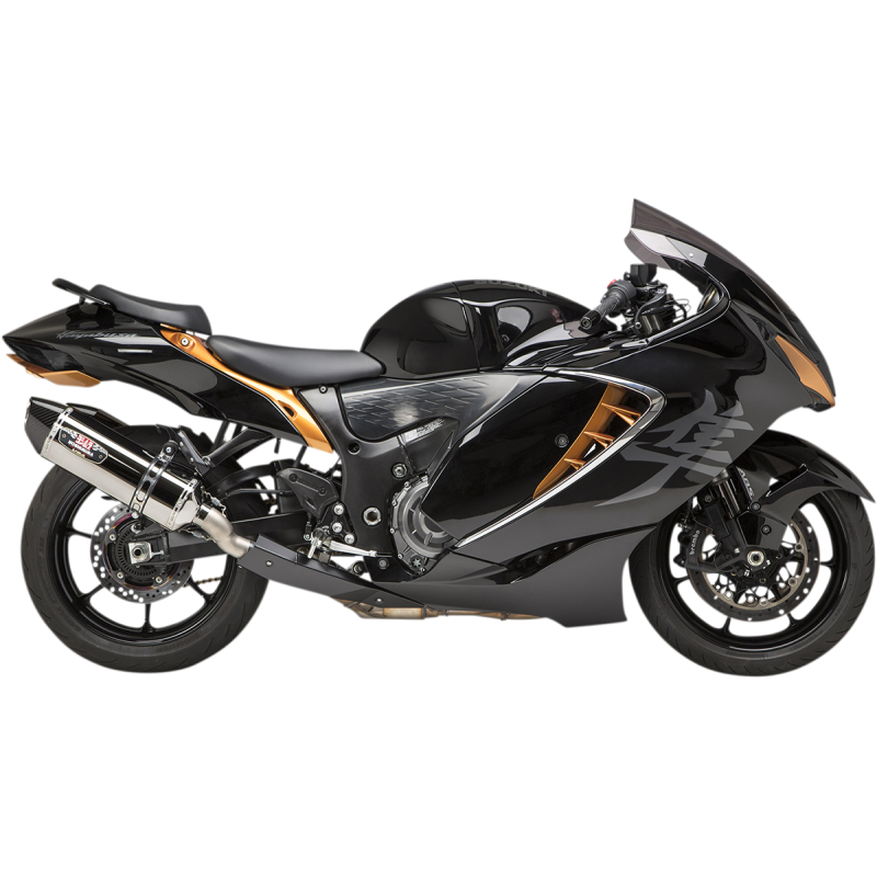 Muffler Type: R-77 (Works Finish). Materials: Stainless/stainless/carbon slip-on (dual mufflers). EMIS Category: 3.