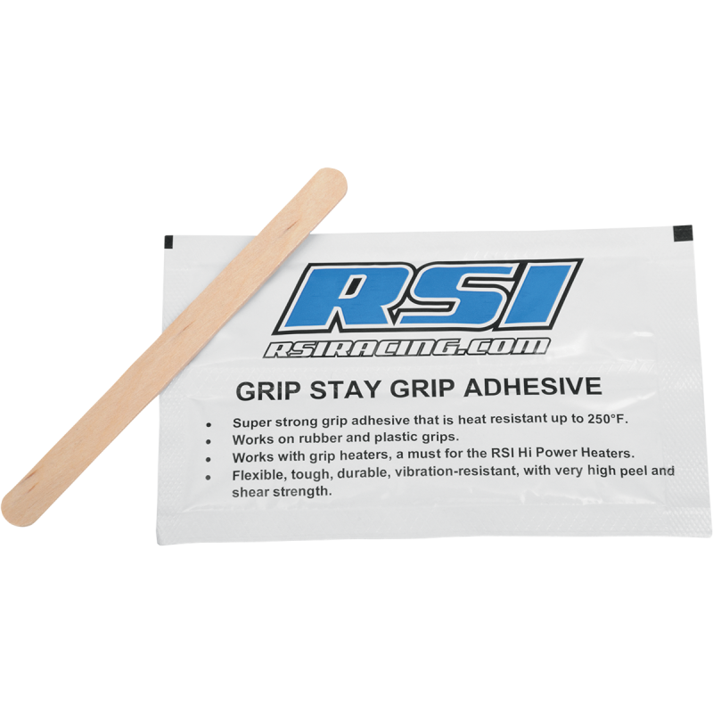 Super-strong grip adhesive is heat resistant up to 121 °C (250 °F). Works on rubber and plastic grips and with grip heaters, a must for RSI High-Power Heaters. Easy double bubble pack dispenses equal amounts for a perfect mix ratio. Contains enough adhesive for one pair of grips, even 8" long grips.