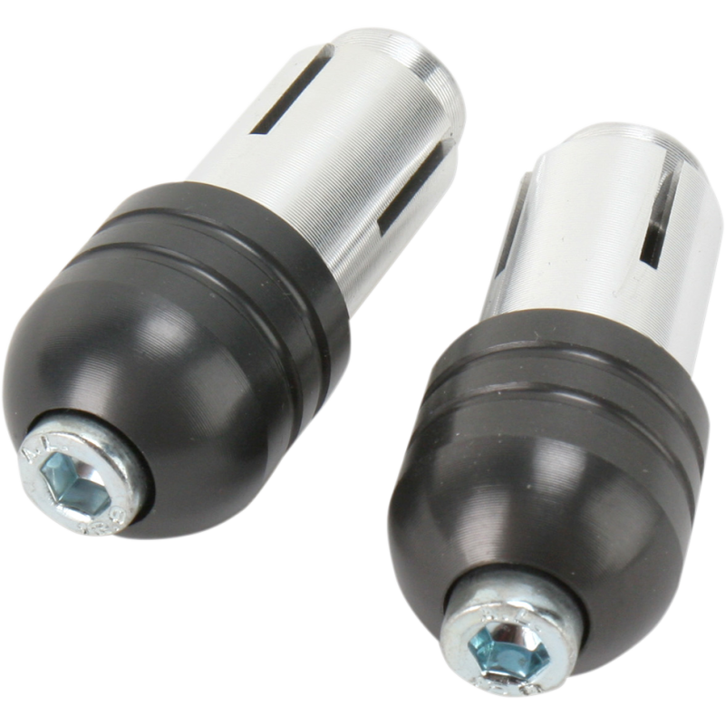 Ultralight CNC-machined from 2011-T3 aluminum. Each set includes an extra adapter sleeve for mounting in either aluminum (14 mm ID) or steel (17 mm) handlebars.