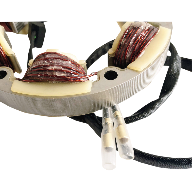 Rick's Motorsport original design. Includes both a stator and a lithium-ion friendly rectifier-regulator. Will put out approximately 150W and power a 55W headlight if the bike's rotor has not been compromised. Supplies constant power to the bike's battery. NOTE: This kit is not for use with standard lead acid batteries. The voltage point is set to 14V +/- 2. Please contact the manufacturer of your lithium-ion battery to ensure the product has the correct set point.