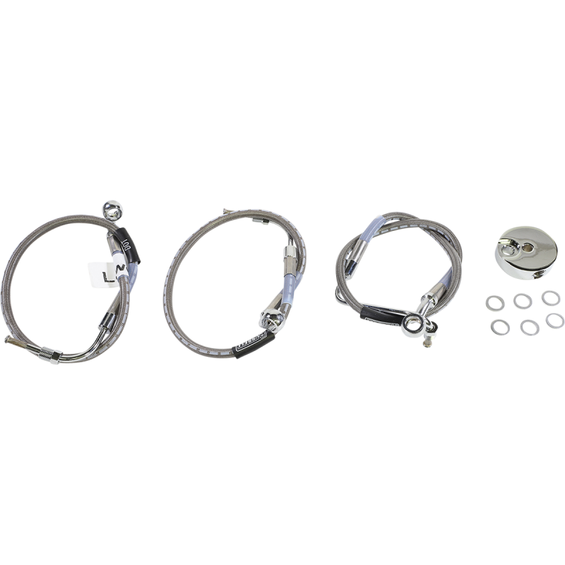Braided brake lines exceed OEM pressure specifications, reduce brake line expansion and look good. Available in stainless steel. Features PTFE inner liner and stainless steel outer braid for smooth fluid transfer and high strength. Factory-assembled for correct fit and reliability.