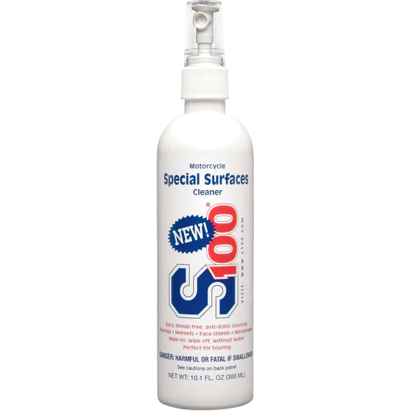 Spray-on cleaner designed specifically for cleaning plastic surfaces. Ideal for helmets, face shields, fairings and windshields. Spray on and wipe off. Features anti-streak and low-residue properties.