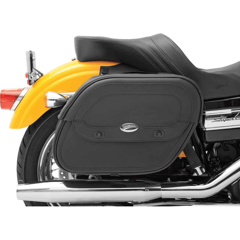 Contoured backside allows fitment directly over most shock absorbers, allowing saddlebag options on bikes that were previously limited due to shock and turn signal placement. Smooth, clean-styled saddlebags feature an easy-open lid with lockable twist-locks, hook-and-loop closures, and fully-rigid construction. Can be installed using zippered yoke for over-the-fender mounting, hard mounted with supports, or with Saddlemen's S4 Quick-Disconnect Mounting Kit.