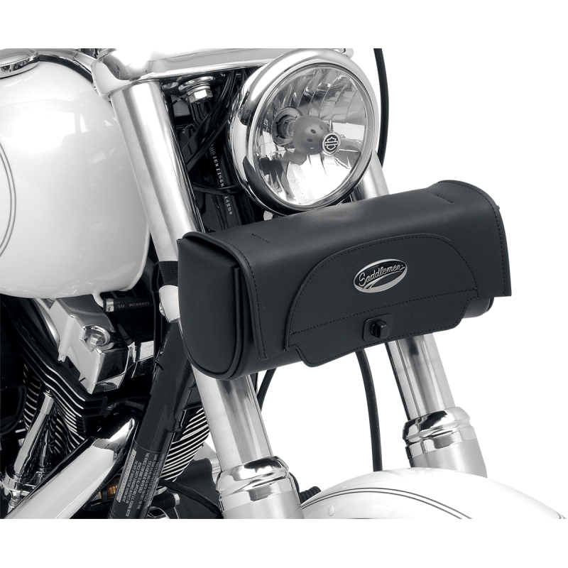 Smooth, clean style tool bags that match Cruis'n saddlebags and large sissy bar bags. Features an easy-open lid with a lockable twist-lock (lock included), supplemented by hook-and-loop. Includes straps for secure mounting.