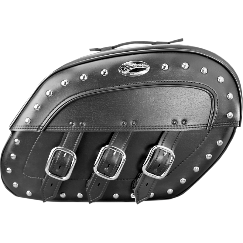 Made of rugged, weather-resistant SaddleHyde™ with a hard backside. Feature three leather straps with chrome buckles, hidden quick-release buckles under the straps for the ultimate in convenience and security and adds the nostalgic touch of chrome studs. Also include a solid ABS-molded back and bottom for shape retention. Lockable buckles; two locks included (one per bag). Can be installed on just about any motorcycle.