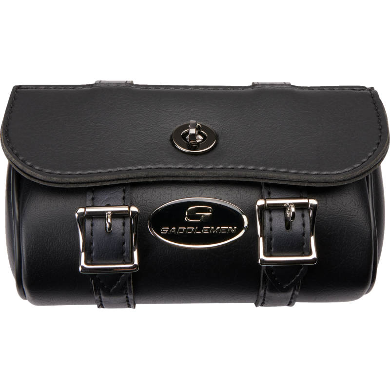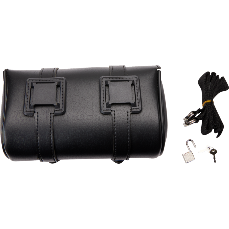Nostalgic-look tool bag available in two sizes; matches Drifter saddlebags and large sissy bar bags. Features bright chrome buckles, genuine leather straps and an easy-open lid with lockable twist lock (lock included). Straps included for secure mounting. NOTE: Matching seats available.