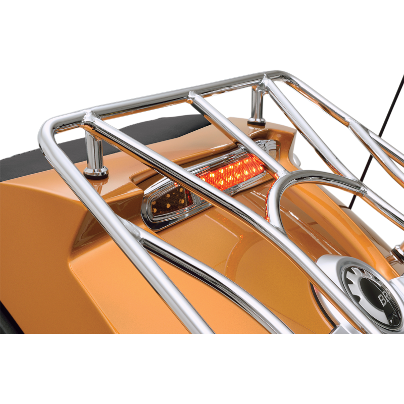 Trunk light offers running light, brake light and turn signal functionality in a single compact unit. Uses small ultra-efficient high-intensity LEDs, offering superb brightness with low power usage. The LED assemblies are enclosed in weather-resistant pods that are sealed to provide all-weather protection and maintenance-free lighting. Superior functionality combined with a stylish contoured chrome housing that mounts low enough to allow fitment of luggage racks. Attaches with double-sided tape for a secure installation. Requires drilling to run the wire lead which mounts to existing LED wiring with T-Taps; no additional components are needed.
