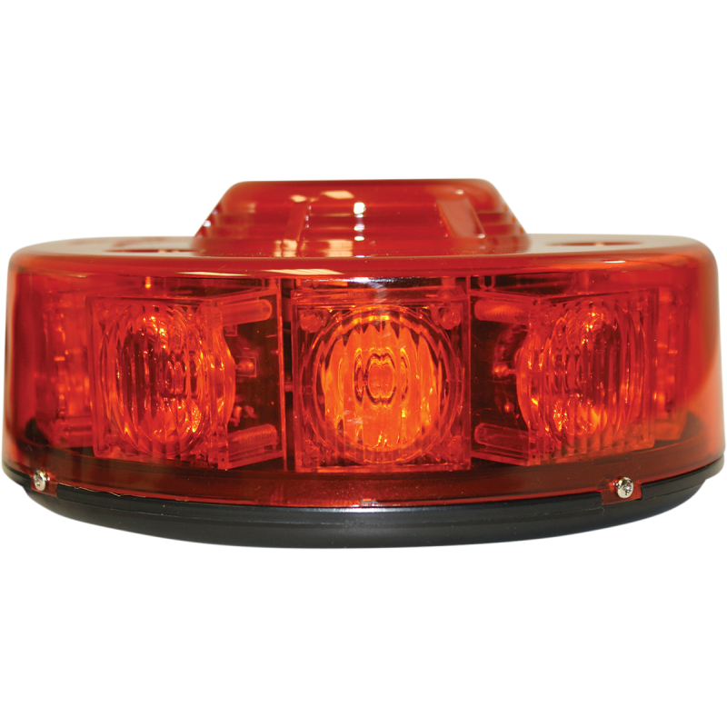Polycarbonate lens construction with eight different flash patterns. Features a magnetic base with a cigarette lighter plug-n-play installation, 12 to 24VDC output, IP67 waterproof rating, and a 50,000 hour service life.